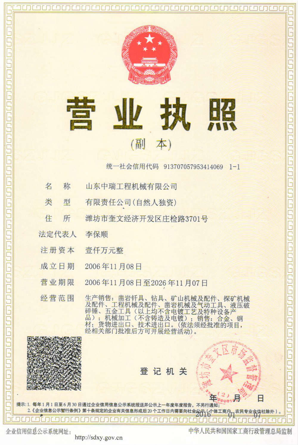 名 称 山东中瑞工程机械有限公司